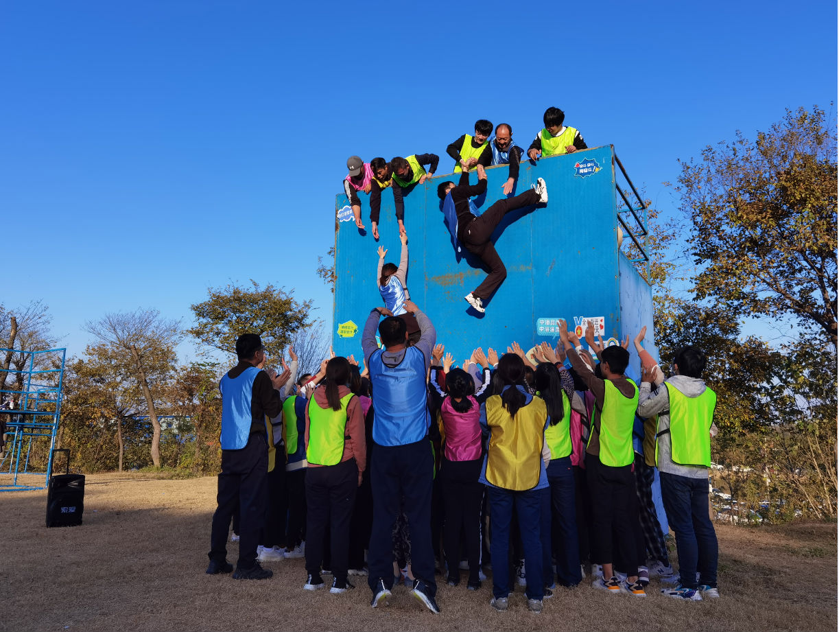在專業(yè)拓展教練的帶領(lǐng)下進(jìn)行了一場(chǎng)智慧與力量的比拼。雖是朝夕相處的同事,但活動(dòng)伊始大家都有些拘謹(jǐn)。在教練的熱情帶動(dòng)下,通過幾輪熱身運(yùn)動(dòng),大家迅速卸下心防,打破壁壘,手拉著手盡情投入到活動(dòng)當(dāng)中。